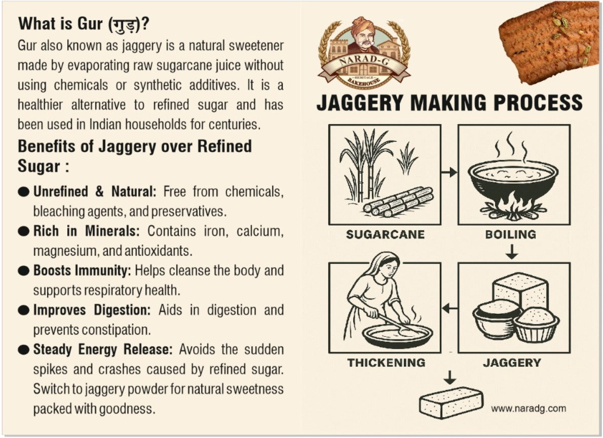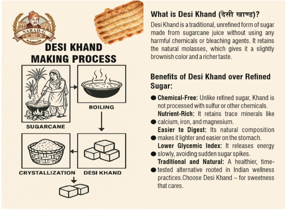 A sweeter spin on our traditional range, Narad-G’s Desi-Khand Atta Biscuit is made with wholesome wheat flour, unrefined khandsari sugar (खांड), and pure desi ghee. A tribute to old-school Indian baking that nourishes the soul.