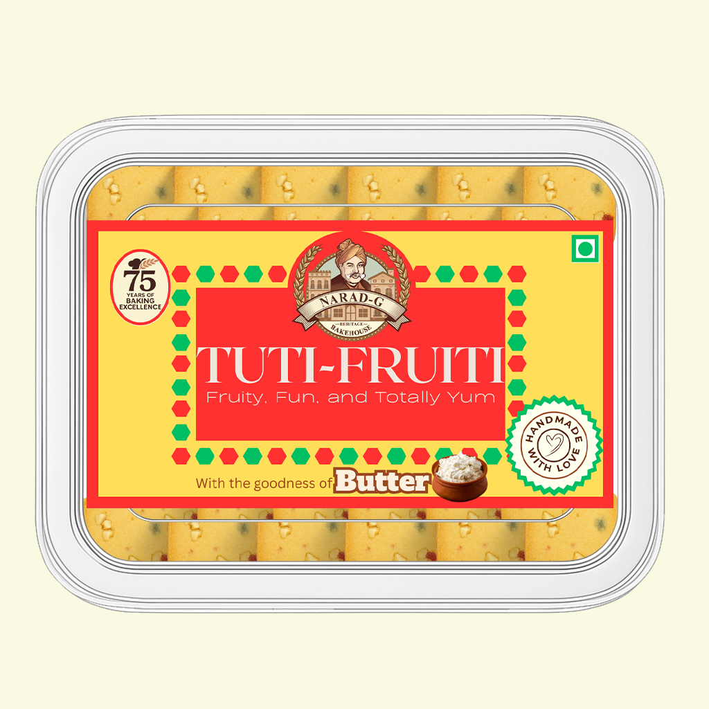 Bring joy to your cookie jar with Narad-Gβs Tuti-Fruiti β a colorful medley of candied fruit chunks baked into soft, buttery biscuits. Loved by kids, craved by grown-ups β itβs nostalgia in every nibble!